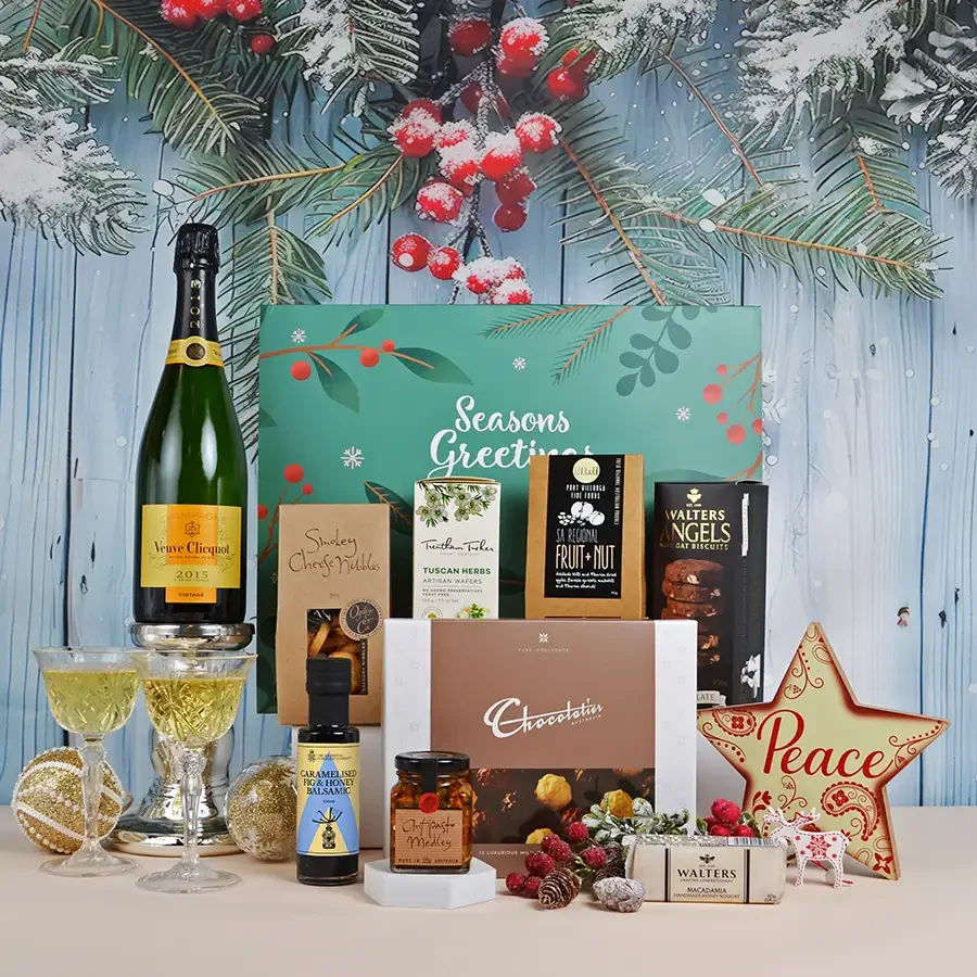 Make this Christmas truly unforgettable with the Vintage Champagne Hamper – a luxurious celebration of fine champagne and gourmet indulgence. Featuring your choice of Vintage Veuve Clicquot or Vintage Moet & Chandon, this hamper is the ultimate expression of elegance and festivity, perfect for gifting to loved ones, colleagues, or clients who deserve something extraordinary.